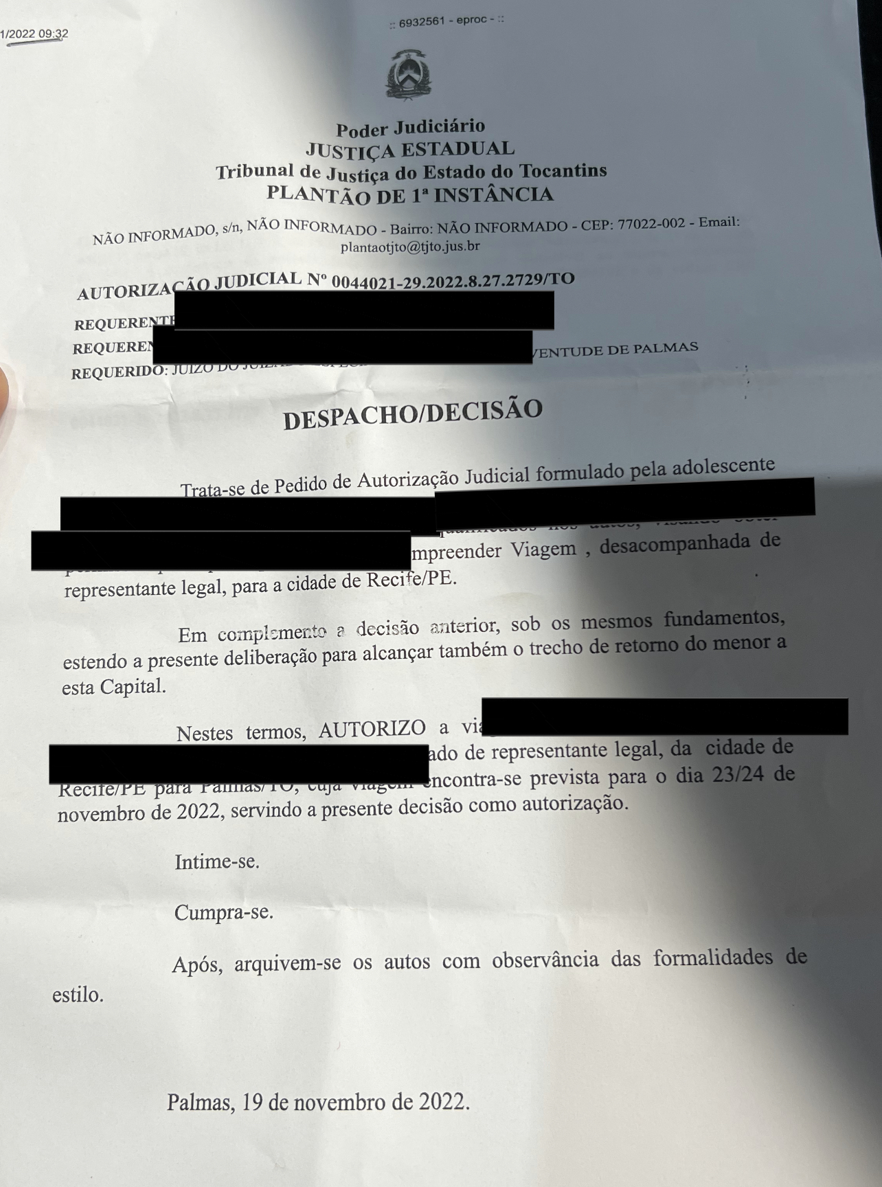 De acordo com a família em Palmas, o garoto foi impedido de viajar mesmo com a mãe o embarcando e a passagem paga. De acordo com o atendente o adolescente teria que além da mãe estar com autorização judicial.