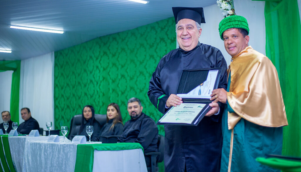 O vice-governador Laurez Moreira recebeu nessa quinta-feira, 23, o título de Doutor Honoris Causa em Ciências Políticas concedido pela Faculdade de Ciências Médicas e Jurídicas (Facmed), em Augustinópolis. A titulação Honoris Causa é a mais alta honraria dispensada por instituições de ensino superior a personalidades públicas por relevantes serviços prestados à sociedade. Laurez Moreira recebeu o título das mãos do presidente e procurador institucional da universidade, Dr. Nilton Elias de Sousa.
