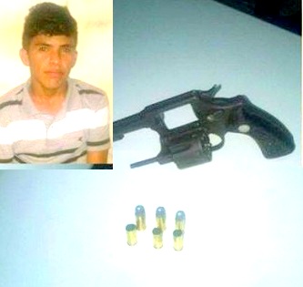Policiais Militares prenderam na madrugada deste domingo, 28, por volta das 5h, Bruno Roberto Santos Mendes, 18 anos, acusado de ter em sua posse, ilegalmente, um revólver calibre 32 com três munições intactas e três deflagradas.