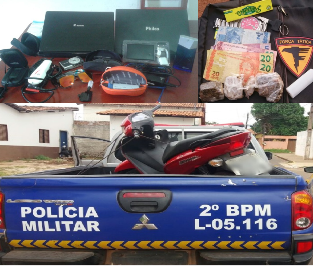 Já em Santa Fé do Araguaia, policiais militares faziam patrulhamento ostensivo quando abordaram dois indivíduos. Foi realiza busca pessoal nos suspeitos e com eles os militares localizaram dois notebooks, dois óculos, uma câmera filmadora, um carregador de celular e um aparelho de barbear. Por meio do levantamento de informações ficou constatado que os objetos eram produtos de furto a uma residência ocorrido durante a madrugada. Os adolescentes de 15 e 17 anos, juntamente com os materiais, foram encaminhados para a Central de Flagrantes para as providências legais.