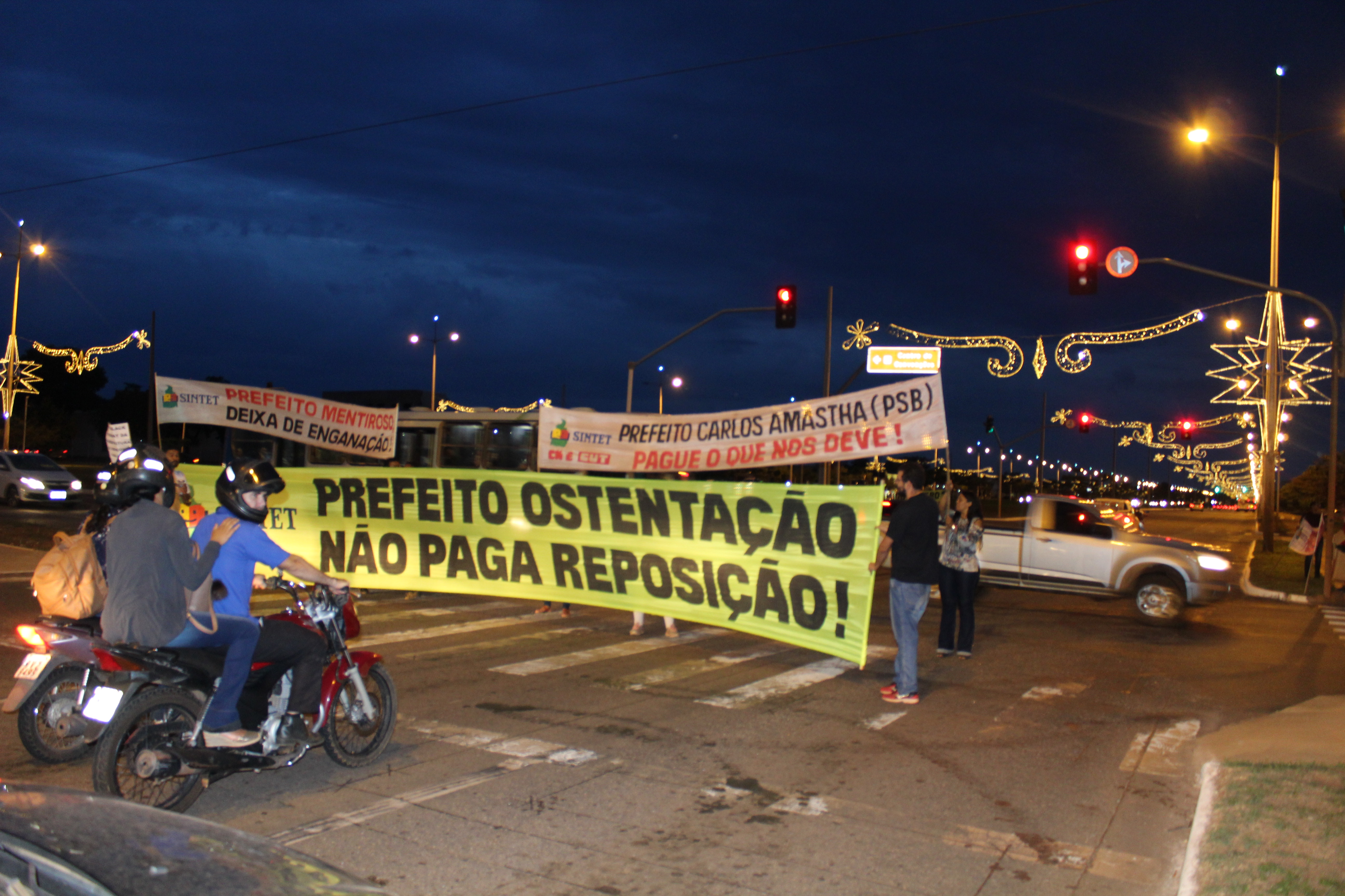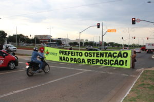 A manifestação foi realizada na tarde desta quinta-feira, 30, no semáforo em frente à Câmara Municipal de Palmas, na avenida Teotônio Segurado. O ato público reuniu os profissionais da educação do município de Palmas que utilizaram faixas para protestar contra a Gestão Municipal e reivindicar pelas seguintes ações:– devolução do corte de pontos e do 13º salário;