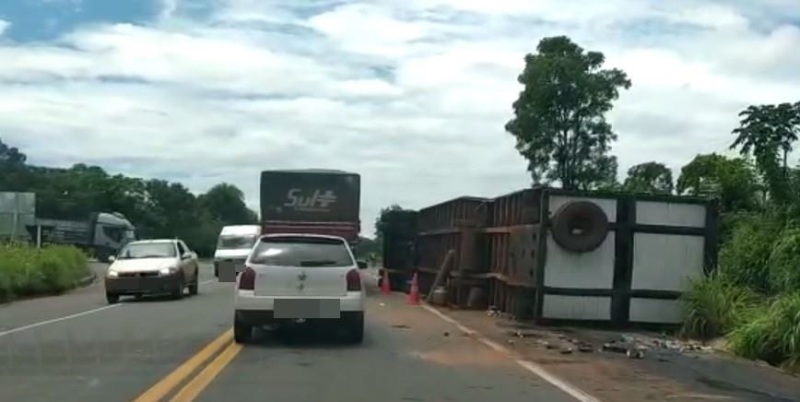 Início » Carreta com carga viva tomba na BR-153, no Norte do Tocantins