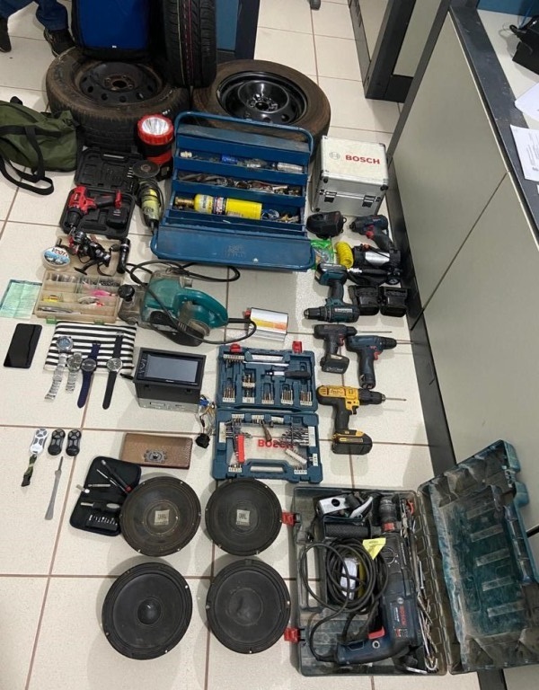 Como resultado das buscas realizadas no imóvel, os policiais civis da 1ª DP apreenderam relógios, furadeiras, alto falantes, aparelhos utilizados na construção civil, a quantia de R$ 3 mil reais, em espécie, uma chave artesanal feita a partir de uma faca de cozinha, e três controles que eram utilizados para bloquear as travas dos veículos fazendo com que os mesmos permanecessem abertos, facilitando, dessa forma, a ação do suspeito.