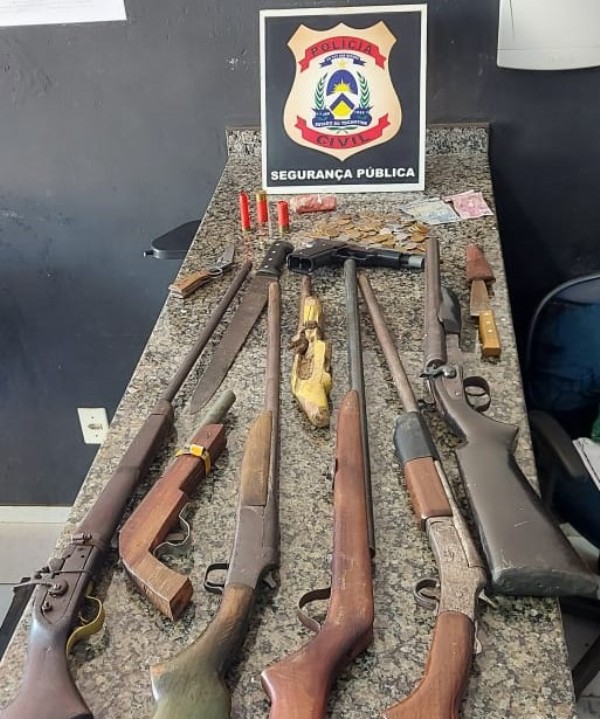 Durante a diligência, os policiais civis encontraram no interior da residência onde a foragida estava escondida, diversas armas de fogo, além de droga, dinheiro em espécie e um caderno com diversas anotações possivelmente associadas ao tráfico de drogas. Na ocasião, um homem também foi preso dentro da casa.