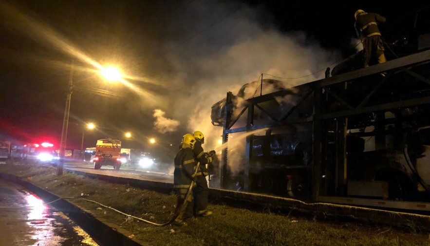 O incêndio consumiu dois dos oito carros que estavam sendo transportados e ainda danificou outros dois, instante em que o incêndio foi completamente controlado e extinto por volta das 04h59. Participaram da ação uma equipe de combate a incêndio, chefiada pelo sargento Doro e outra de Resgate liderada pelo sargento Marcones.