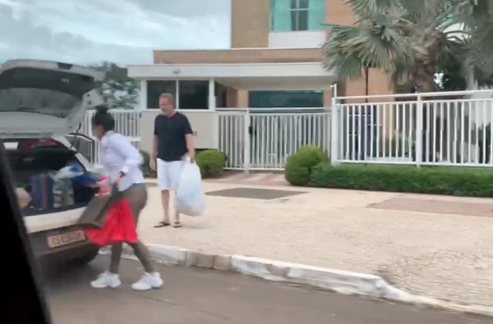 O governador afastado do Tocantins, Mauro Carlesse (PSL), voltou para Palmas neste último fim de semana. No domingo (26) um morador que passava pela orla da Praia da Graciosa registrou o momento em que o político estava na portaria do prédio em que vive.