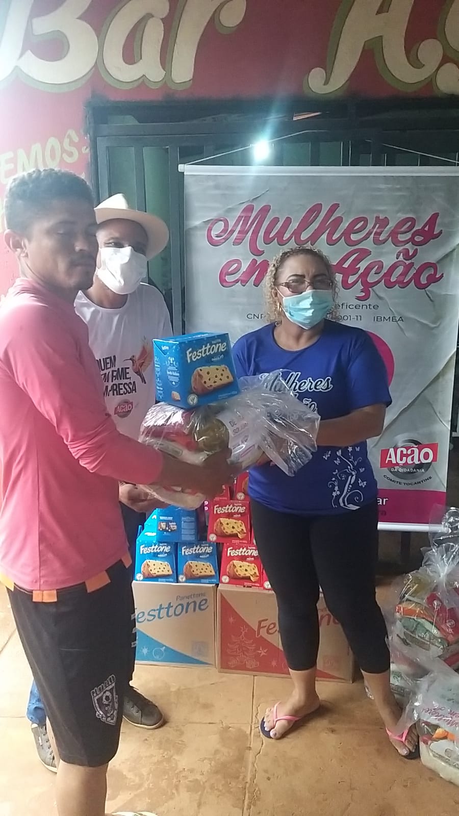 O Instituto Beneficente Mulheres em Ação em parceria com o Comitê da Ação da Cidadania atenderam com cestas básicas 250 famílias na região Norte de Palmas e mais 300 na região Sul.