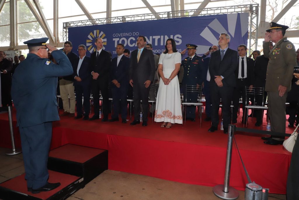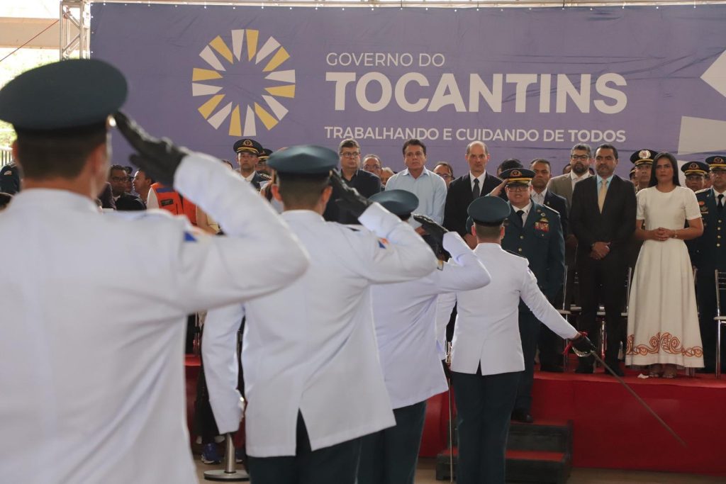 Acompanhado da esposa, Karynne Sotero, e do comandante-geral do Corpo de Bombeiros Militar do Tocantins (CBMTO), coronel Peterson Queiroz de Ornelas, o governador destacou a importância da corporação para a segurança e a proteção da sociedade tocantinense, reforçando o compromisso do Governo do Estado com o fortalecimento das forças de segurança.